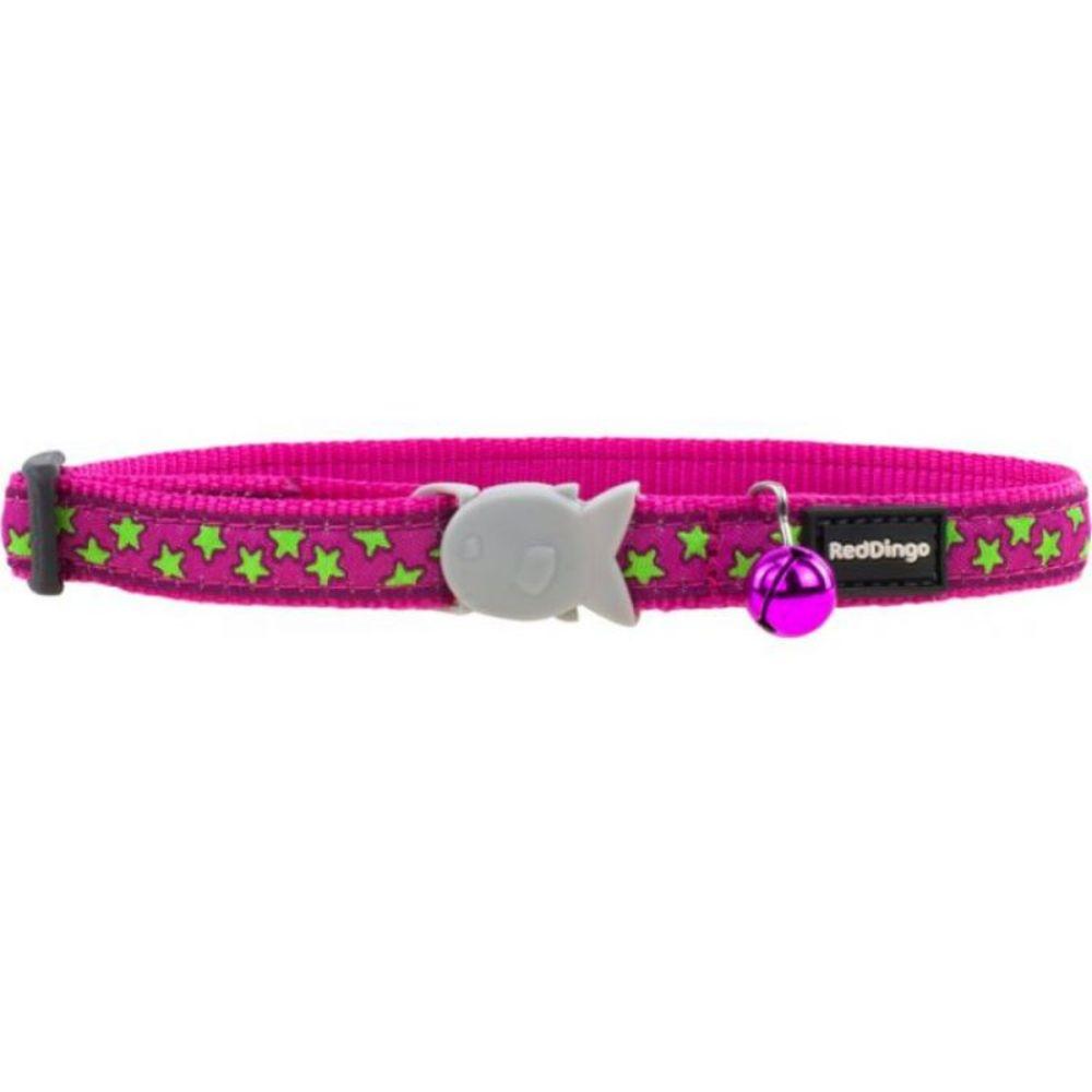 Red Dingo Ribbon Star Collar Fucsia Este Collar para gato con fabulosos y divertidos colores y diseños de estrellas vibrantes. Está hecho de nailon de calidad suave, delicado y duradero. Corte de empalme para mejorar la comodidad de la mascota.