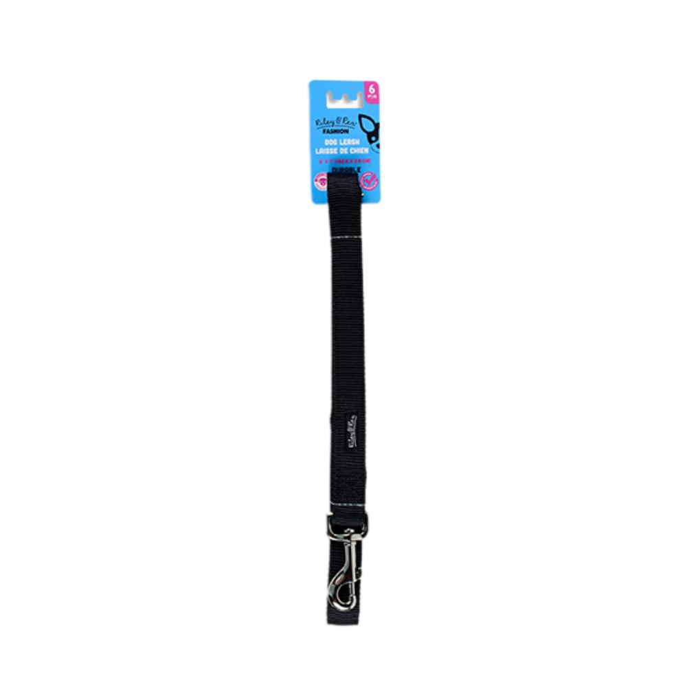 Riley & Rex Correa Nailon Doble Capa Negro para Perros 6’x 1″