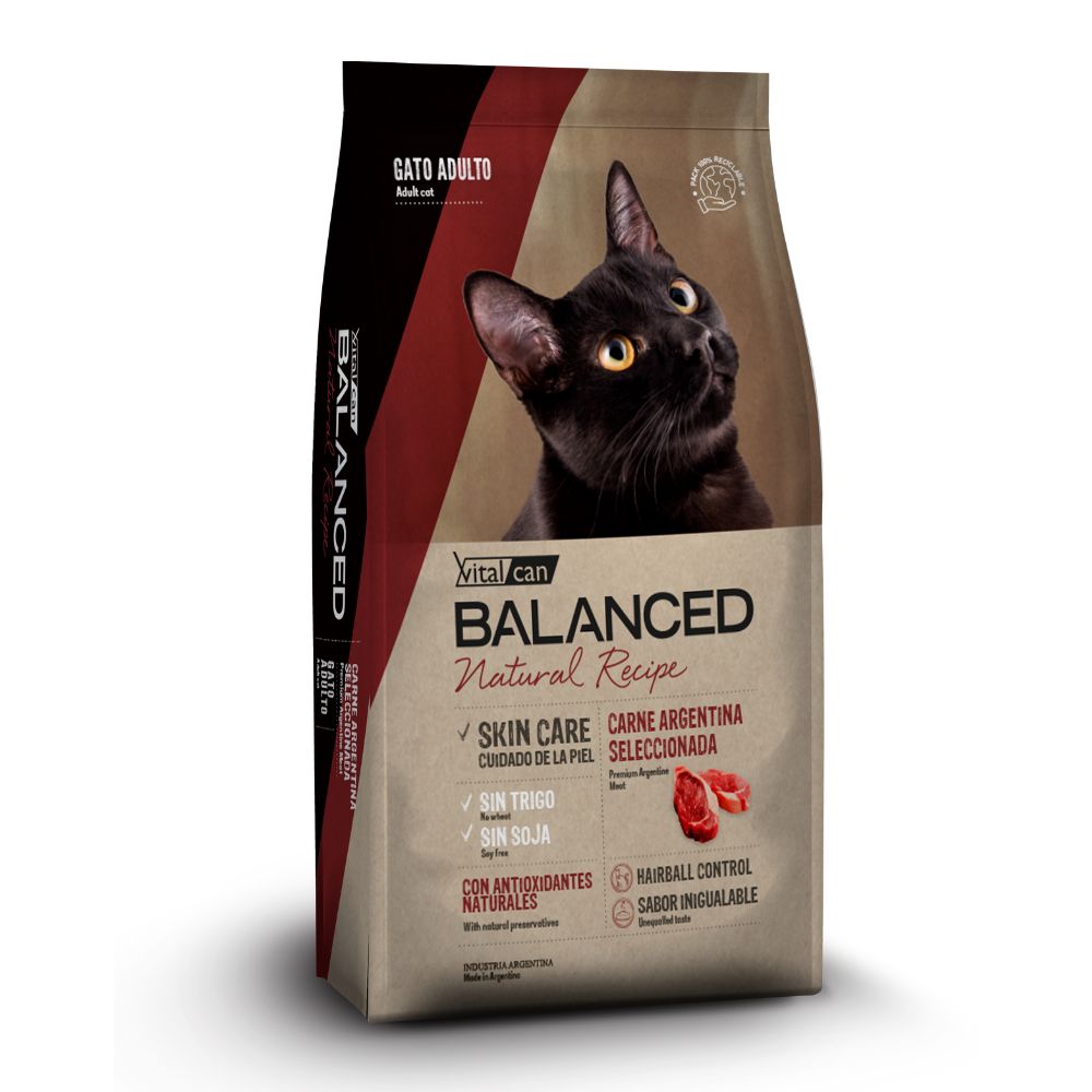 Vitalcan Balanced Natural Recipe Carne Argentina Seleccionada es un alimento completo y equilibrado para gatos adultos, elaborado con carne argentina seleccionada como principal fuente de proteína, aportando nutrición de alta calidad que favorece la digestión y el bienestar general.