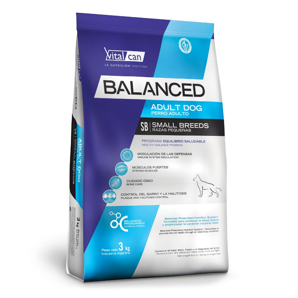 Vitalcan Balanced Adult está diseñado para cubrir las necesidades nutricionales específicas de los perros adultos de razas pequeñas. Su Programa Equilibrio Saludable incluye proteínas de alta calidad que favorecen el mantenimiento de una masa muscular fuerte y magra. La inclusión de hexametafosfato de sodio ayuda a prevenir la formación de sarro dental y mejora el aliento. Además, aporta cantidades equilibradas de calcio y fósforo que contribuyen a mantener huesos sanos y fuertes.