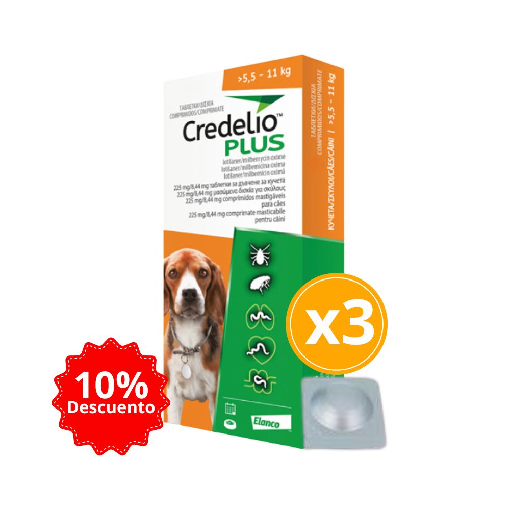Credelio Plus 5.5 A 11kg (12 A 24.2 Lbs) Antigarrapatas, Antipulgas Y Antiparasitario Interno para Perros y cachorros a partir de las 8 semanas de edad. con infestaciones/infecciones mixtas de garrapatas, pulgas, nematodos gastrointestinales, dirofilarias o parásitos pulmonares, o con riesgo de padecerlas.
