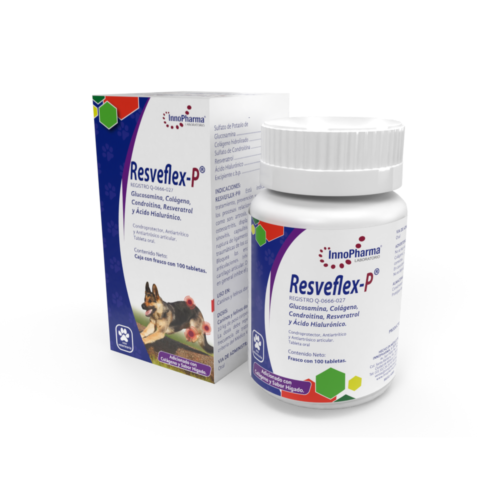 Resveflex-p Prevencion y tratamiento para afecciones articulares. Está indicado para el tratamiento y prevención de todos los procesos relacionados con la osteoartritis como son: artrosis, hidrartrosis, condropatías, osteoartritis, displasia de cadera, tendinitis, sinovitis, capsulitis traumática, luxaciones, ruptura de ligamentos intraarticulares y lesiones traumáticas de los cartílagos articulares.