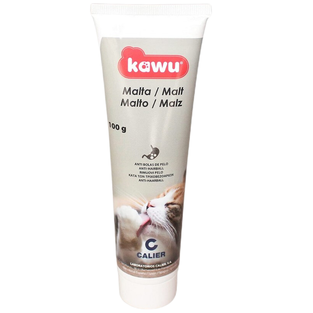 Kawu Malta Complemento nutricional para gatos ideal para el manejo de las bolas de pelo. Mantiene la piel sana y el pelo brillante, gracias a su aporte de Omega 3 y Omega 6. Contiene prebióticos para mantener la flora intestinal sana. Indicado para la muda.