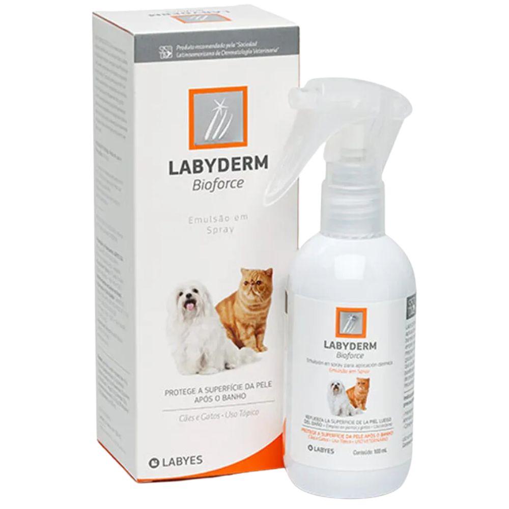 Labyderm Bioforce Spray hidrata y fortalece la superficie de la piel y el pelo luego del baño. Su formulación restituye rápidamente la película hidrolipídica, lo cual previene la deshidratación de la piel, su descamación excesiva y la protege de la invasión microbiana en perros y gatos.