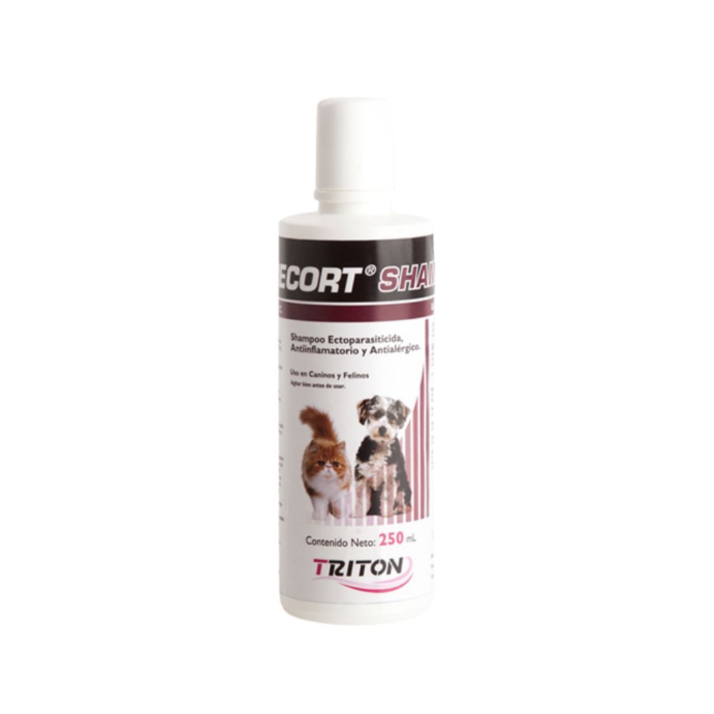 Triton Pirecort Shampoo Antinflamatorio, Antialérgico y Ectoparasiticida para mascotas, para el tratamiento de las ectoparasitosis provocadas por pulgas, piojos y garrapatas, y tratamiento local para las reacciones de hipersensibilidad.