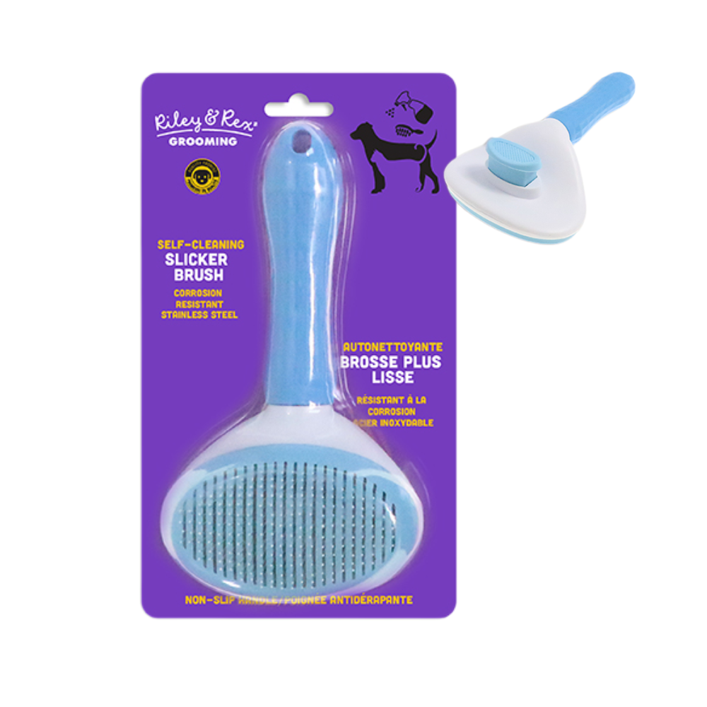 Riley & Rex Cepillo Azul Autolimpiante tiene 256 agujas finas que están rematadas con una tapa para que no dañe la piel y el cabello, incluso masajea la piel.