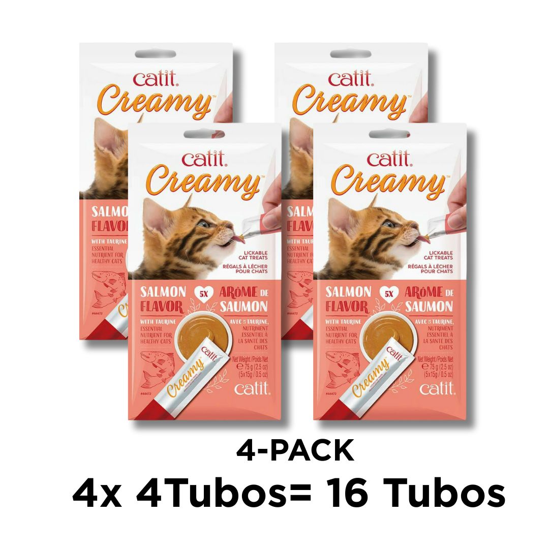 Catit Creamy Salmon Golosina para Gatos 4 Tubos (16 Tubos) 4-PACK