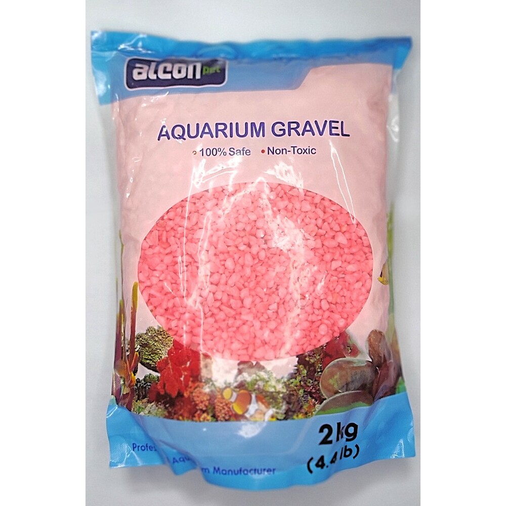 AlconPet Grava Rosado Neón Ideal para peceras de agua dulce y salada. Es un color muy atractivo que agrega lucidez y belleza a tu pecera. Esta grava de alta calidad tiene un revestimiento durable, no tóxico para los peces.